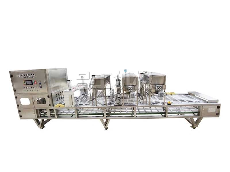 人工放杯,人工投料,自動放片蓋,自動封口,自動出杯??筛鶕?jù)要求增加減功能。