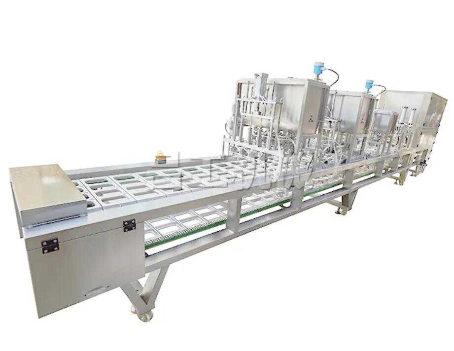 本機(jī)采用合理的機(jī)械傳動(dòng),功能齊全,灌裝、封口、切邊、制品推出,廢料收卷,印碼等自動(dòng)化工作,可節(jié)約人力,降低成本。本機(jī)有二次熱封裝置,料杯/碗/盒與封膜經(jīng)過前后二次熱封,封口牢固可靠。